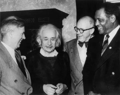 Former Vice President Henry Wallace, Physicist Albert Einstein, Lewis L. Wallace of Princeton University, and African American actor Paul Robeson meeting in Princeton, New Jersey. IMAGE/Medium