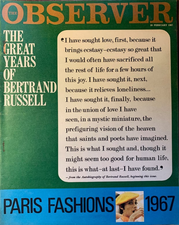 The Observer Magazine has never again featured an extract from the autobiography of a philosopher on its cover after ‘The Great Years of Bertrand Russell’, 26 February 1967.