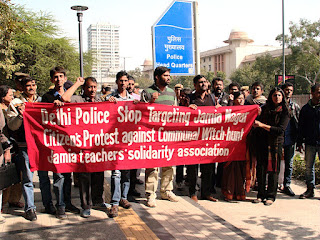 “This atmosphere of suspicion and fear has created panic among the locals as well as the students of Jamia Millia Islamia (JMI) who reside in Jamia Nagar,” says Farah Farooqui, a teacher at JMI. Jamia Teachers Solidarity Association (JTSA) organised a protest at the Delhi Police Headquarters to oppose the criminalisation of this locality by the police and security agencies.