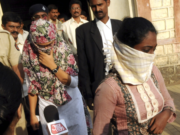 Shaheen Dhada (left) and Renu Srinivasan leave court in Mumbai on Nov. 19. Dhada was arrested for a Facebook post questioning the shutdown of Mumbai for the funeral of a powerful politician; Srinivasan was arrested for “liking” the post. PHOTO/AP/NPR