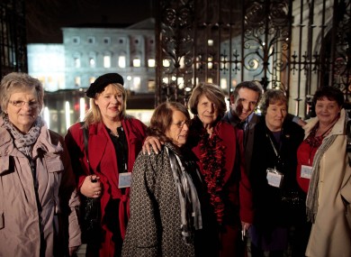 Marina Gambold, Maureen Sullivan, Mary McGuinness, Kathleen Janette, Steven O’Riordan, Geraldine Cronin and Julie McClure of Magdalene Survivors Together leaving Leinster House in Dublin after hearing Taoiseach Enda Kenny’s state apology in Februrary. PHOTO/Niall Carson/PA Archive/Press Association Images