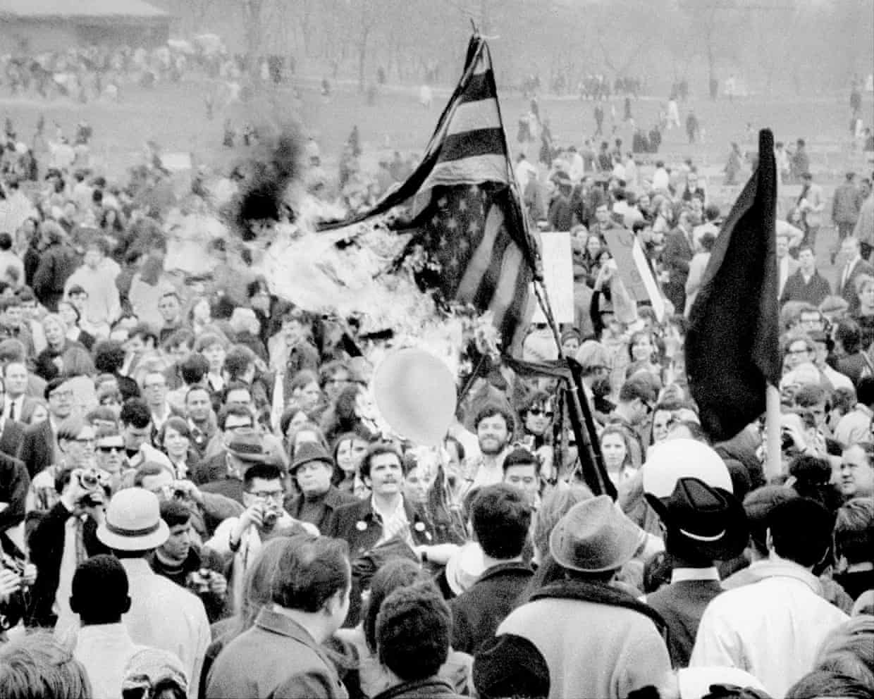 “Anti-Vietnam war demonstrators burn the flag in Central Park, 1967.” PHOTO/New York Daily News Archive via Getty Images/The Guardian