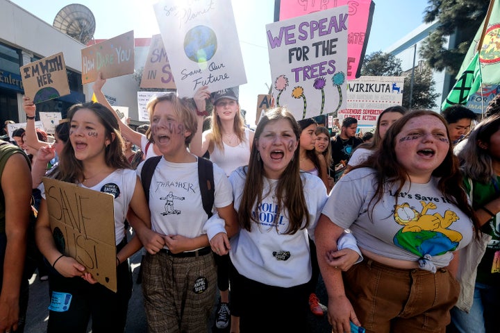 PHOTO/ASSOCIATED PRESS Climate activists participate in a student-led climate change march in Los Angeles on Nov. 1.