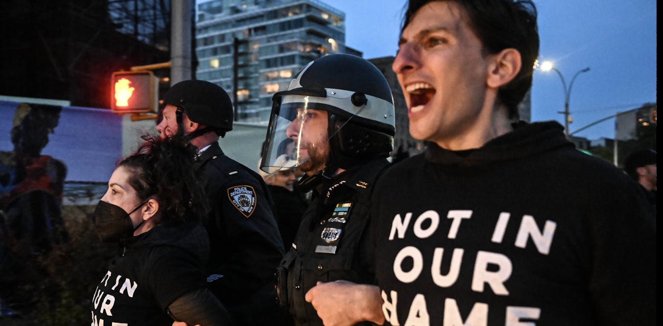 Police arrest hundreds, including members of the Jewish group Not In Our Name, at a pro-Palestinian protest in Brooklyn on April 23, 2024.IMAGE/ Fatih Aktas/Anadolu via Getty Images