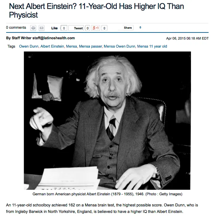 News reports featuring contemporary individuals able to perform remarkable mental feats inevitably compare them to Einstein and other brilliant minds of the past. Often, such comparison is made using IQ. The trouble is that there is no record of Einstein taking a full IQ test and having it scored objectively by psychologists. It has just been guessed, not measured. Moreover, over the decades there have been many different types of IQ tests, each of which has its own range and scoring criteria. Consequently, any IQ comparison between Einstein and a purported modern-day savant is essentially meaningless.
